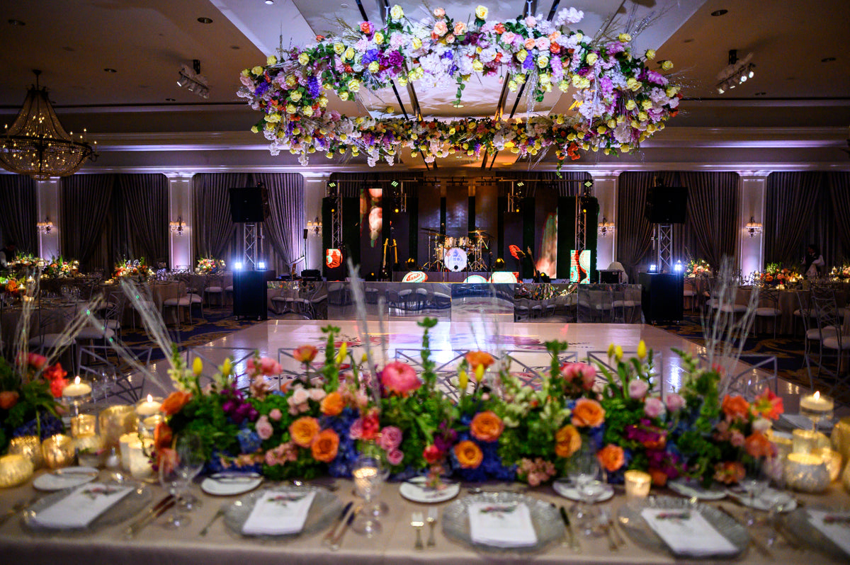 In contrast, The Houstonian Hotel becomes a playground of hues and tones, an exuberant tapestry woven by PlantsNPetals for the quintessential vivid wedding.