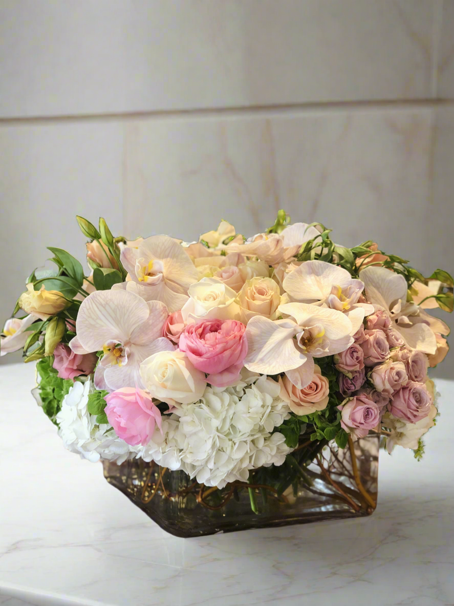 Send flowers online in Houston with confidence. All our deliveries are done directly by us, ensuring our arrangements arrive looking pristine and ready to impress. Also available for in-store pick up.