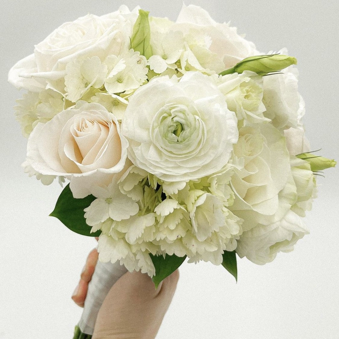ALL white standard florals nosegay perfect for cotillion, homecoming, prom, and quinceañeras.