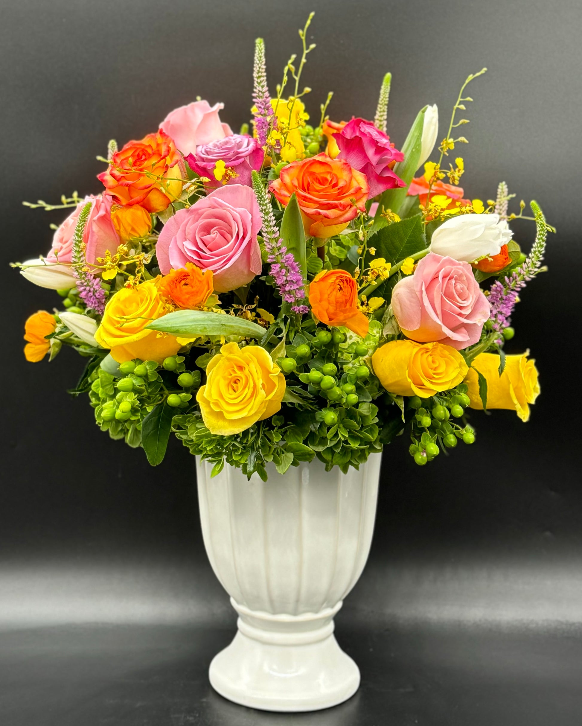 Send flowers online in Houston with confidence. All our deliveries are done directly by us, ensuring our arrangements arrive looking pristine and ready to impress. Also available for in-store pick up.