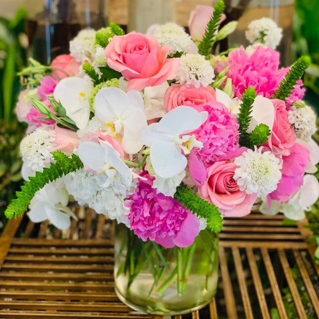 Send flowers online in Houston with confidence. All our deliveries are done directly by us, ensuring our arrangements arrive looking pristine and ready to impress. Also available for in-store pick up.